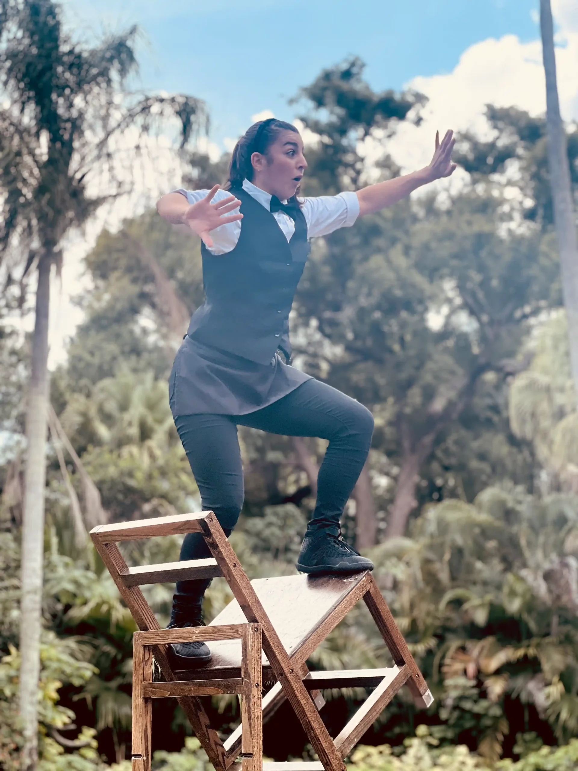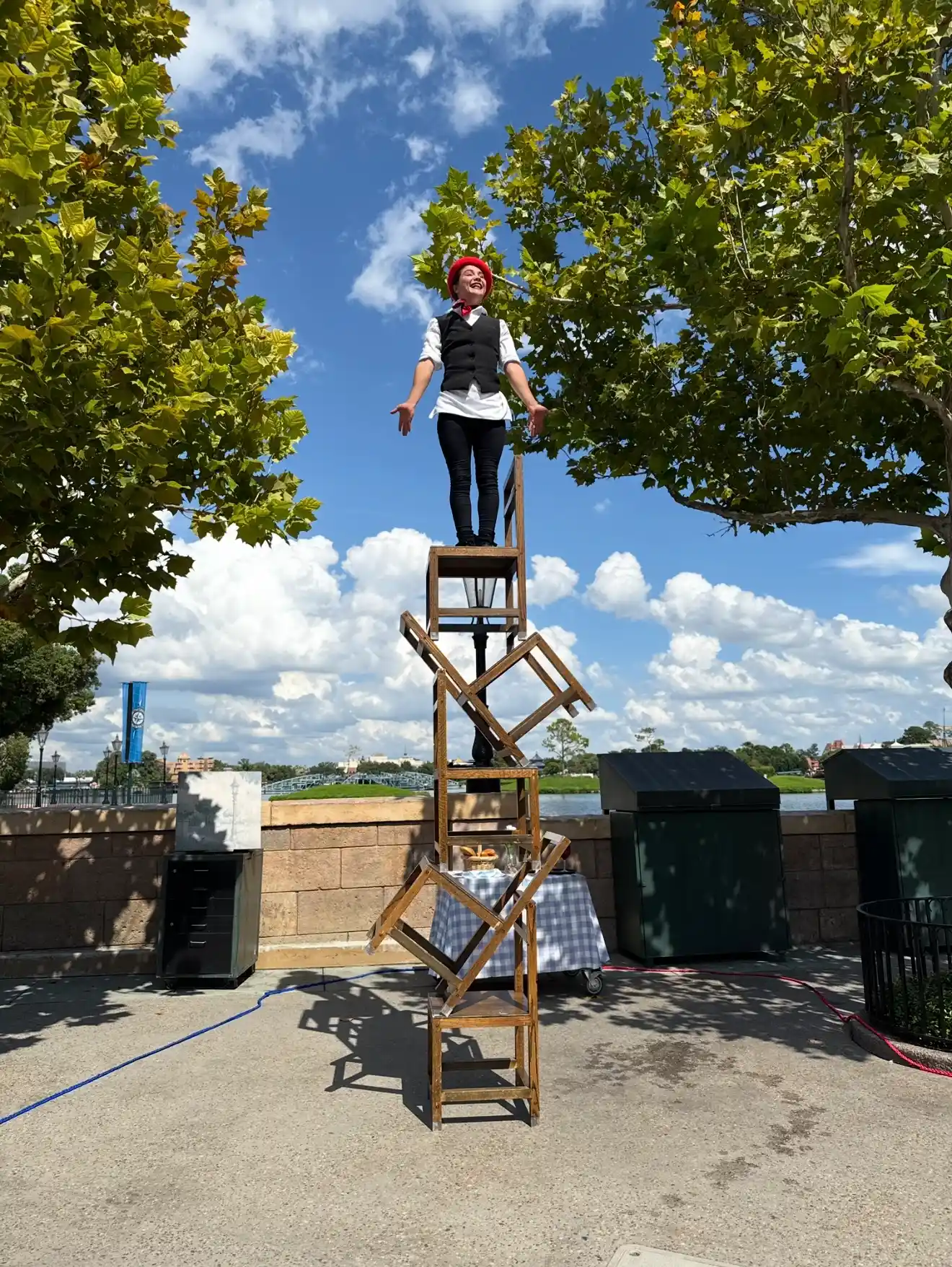 This atmosphere show starts off seeming like an ordinary dinner table setup…and quickly turns into an acrobatic waiter stacking regular dining room chairs one on top of another! If this is not extreme enough, your audience will be dazzled as the performer’s heels pass over their head at over 14ft in the air! You won’t be able to find this Incredible Service in any other restaurant!